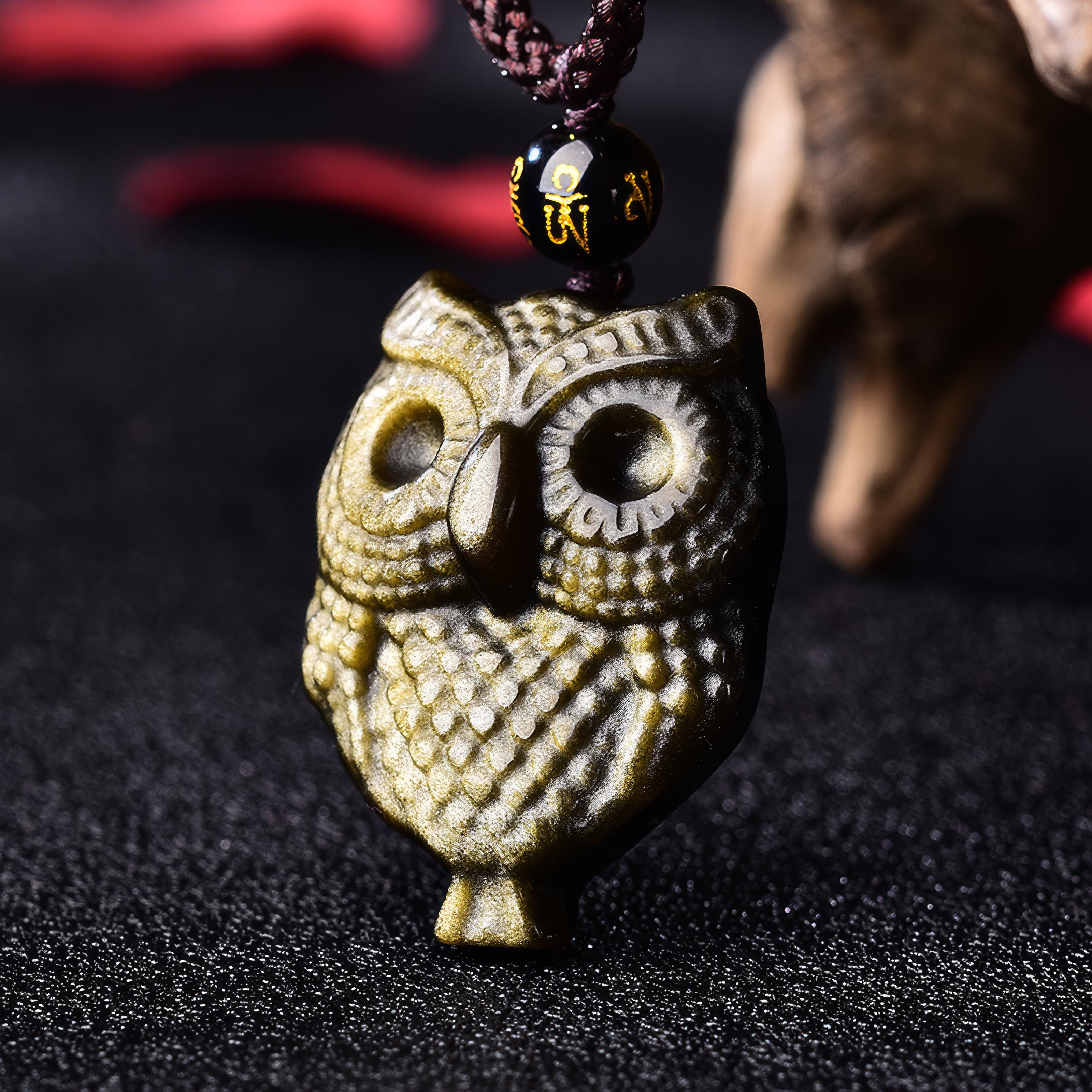 Gold Obsidian Owl Pendant