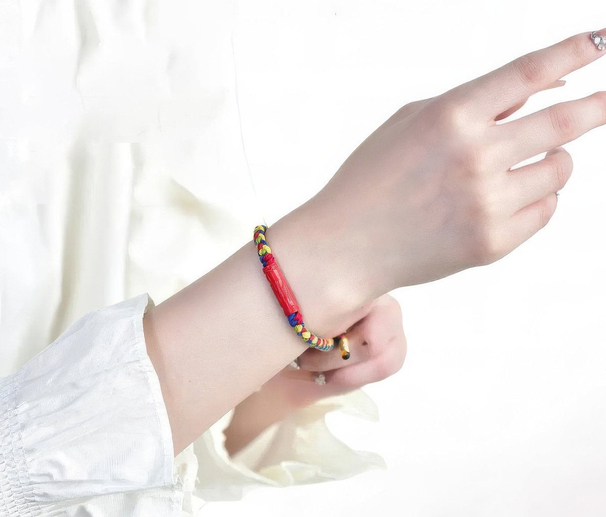 Natural Cinnabar Hand-Woven Rope Bracelet