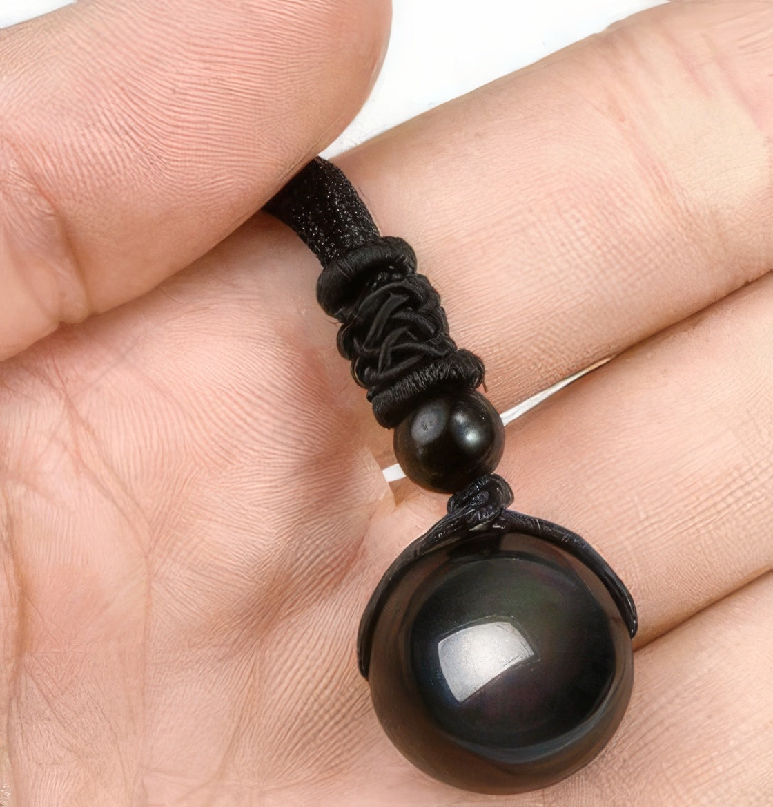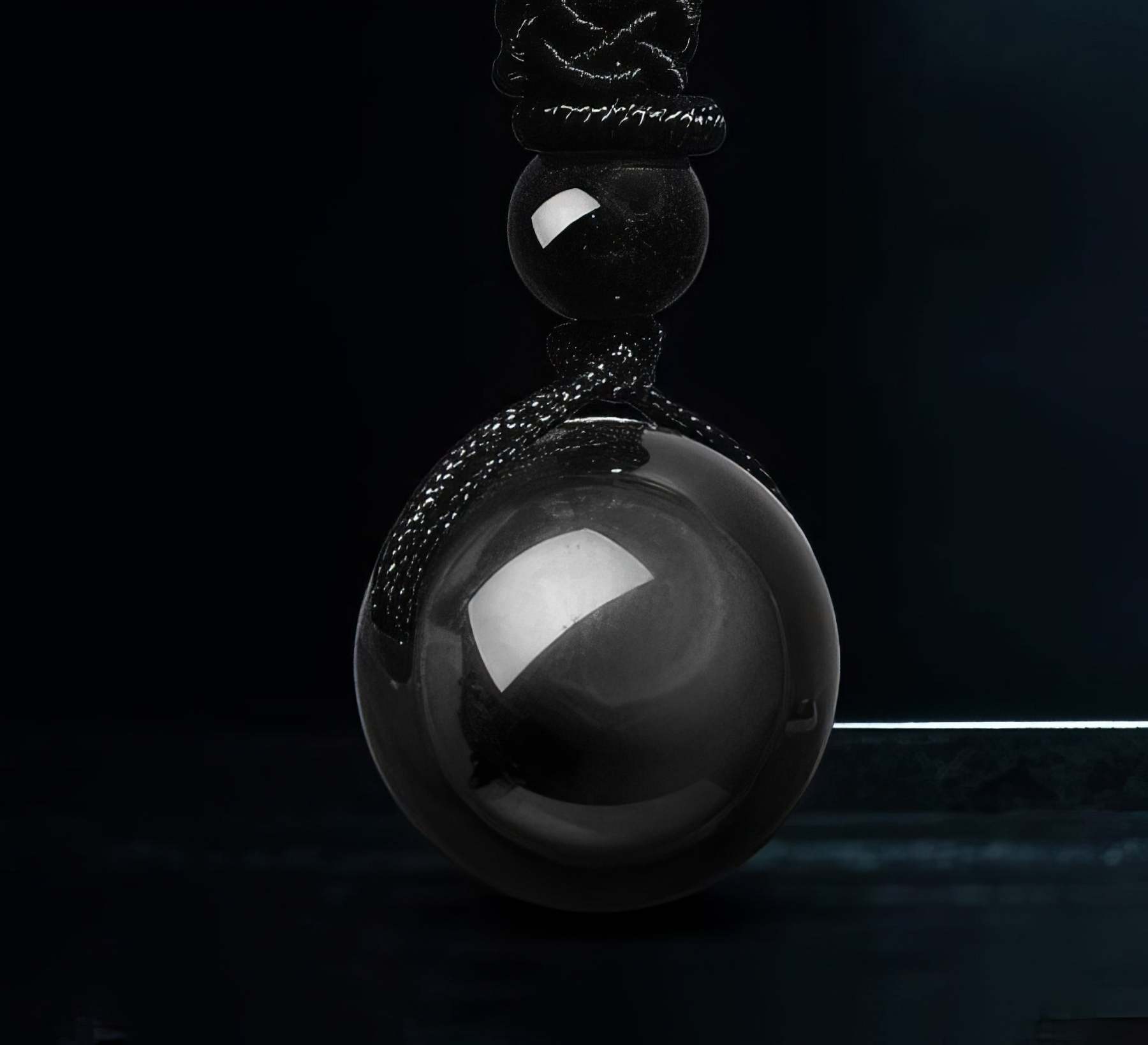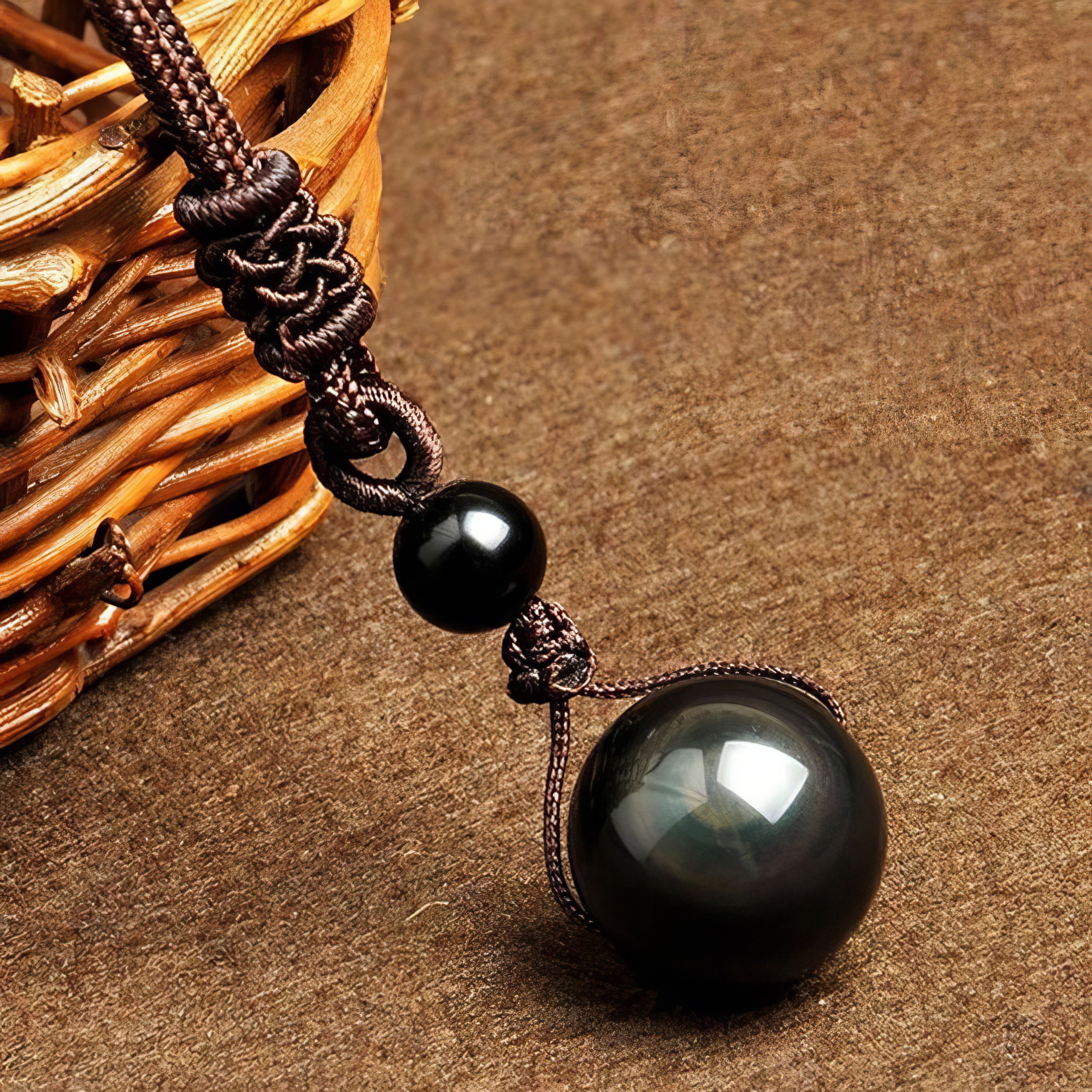 Natural Obsidian Bead Pendant Necklace